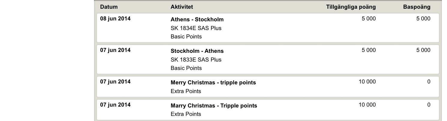 Poängen för resan dök upp på kontot idag, dock inga trippla poäng. Väntar någon dag med att skriva ett brev...