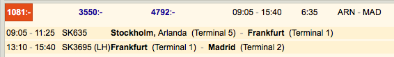 Jag har nyligen bokat en resa med retur från annan ort, vad ska man tro om det, det är ju inte en tur-retur utan en tur-transport-turtillbaka. Enligt modellen AAA-BBB-CCC-DDD-AAA där flighten CCC-DDD flygs av annat bolag, men allt i samma bokning.