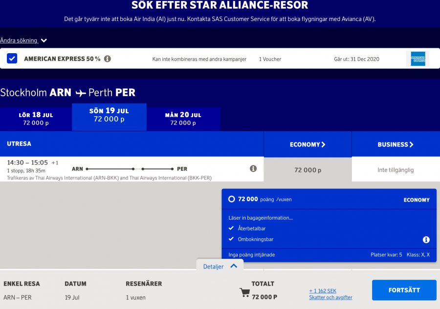 Är det någon mer än jag som haft problem med att boka 2-4-1 de senaste dagarna på Star Alliance Award | SAS? När jag kryssar i 2-4-1 på en resa för en person enkel så blir det inte halva priset ( se bild)