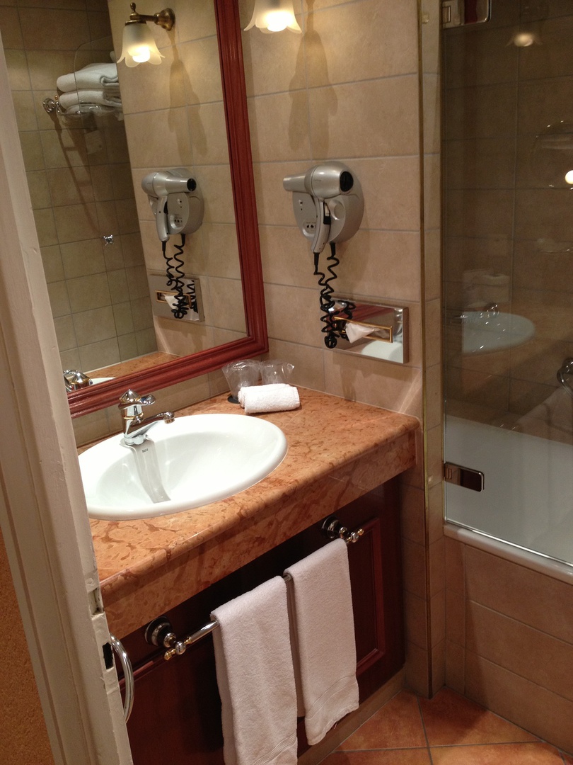 En dubbelsäng på 180cm, två stolar, ett bord och en TV fanns i rummet. I princip allt jag behövde för min korta 2 nätters vistelse (eller rättare sagt en natt, då min utekväll slutade kl 09 på söndagsmorgonen), men jag kunde lätt ha stannat längre. Badrummet var ganska simpelt det också, och det fanns t.ex inga toalettsaker förutom behållare med multi-purpose tvål som satt fast på väggen. Värt att notera är att handdukarna inte byttes ut så ofta, så man blir tvungen att hänga tillbaka den på stället. Likaså städades inte rummet, trots att städning ingår på kortare vistelser under 3 nätter. Å andra sidan kan städerskan ha dykt förbi rummet innan jag var tillbaka på morgonen…