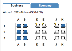 Jag har bokat en resa mellan Istanbul och Ho Chi Minh i Business och ExportFlyer visar upp denna seat map (FamXYZ på rad 2 och 3). Jag misstänker angle-flat. Har någon flugit denna konfiguration long haul? Kuriosa: bokningen säger A330-300 men seat map på EF säger A330-200, men det är helt i linje med hur det kan se ut när man flyger Turkish.