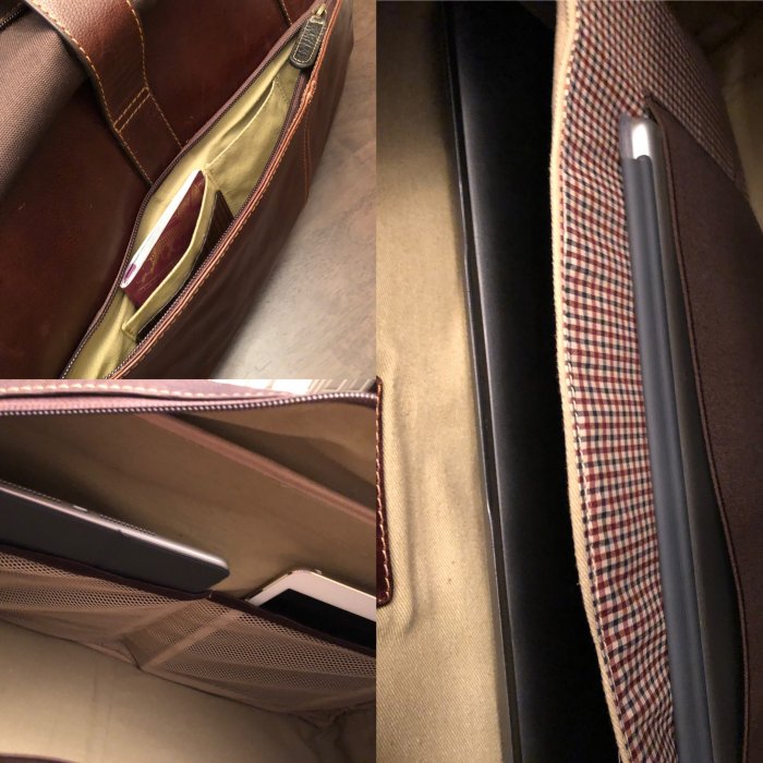 På andra sidan finns en ficka med magnetlås, där man kan kasta ner en tidning, jag brukar även använda detta tacka för att skyffla ner klocka och telefon vid säkerhetskontrollen.