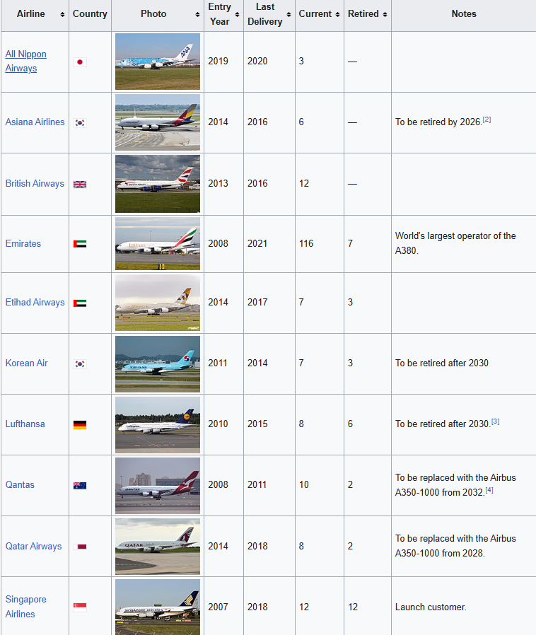 Jag gillar att såpass många A380 fortfarande är i operativt bruk. Alla dessa "to be retired by x" har hitintills skjutits ut ganska kraftigt, och då närmar sig inte 777x ens nära någon form av certifiering och än mindre leverans i nämnvärd kvantiet. A350-1000 konkurrerar inte helt med A380. Av stora widebodys kommer 747-8i och A380 vara användbara ett bra tag till. Dessutom är de säkra och beprövade med många flygtimmar och cykler kvar.