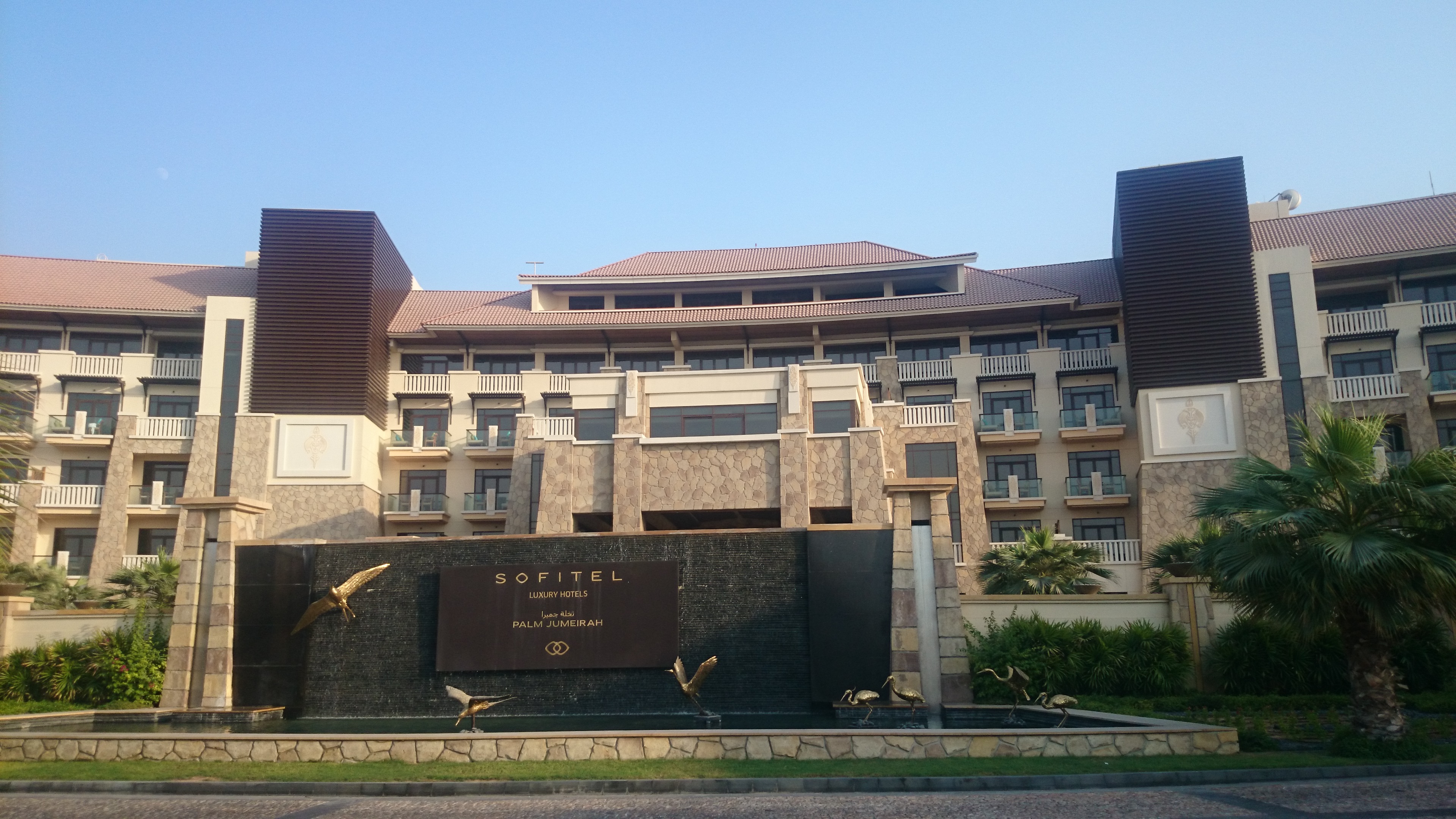 Resan till hotellet tog 40 min ifrån terminal 3. Sofitel har 3 hotell i Dubai varav ett av dessa ligger längst ut på Palm Jumeirah som är den helt konstgjorda byggda ön i Dubai. Hotellet ligger granne med det kända Atlantis hotellet.