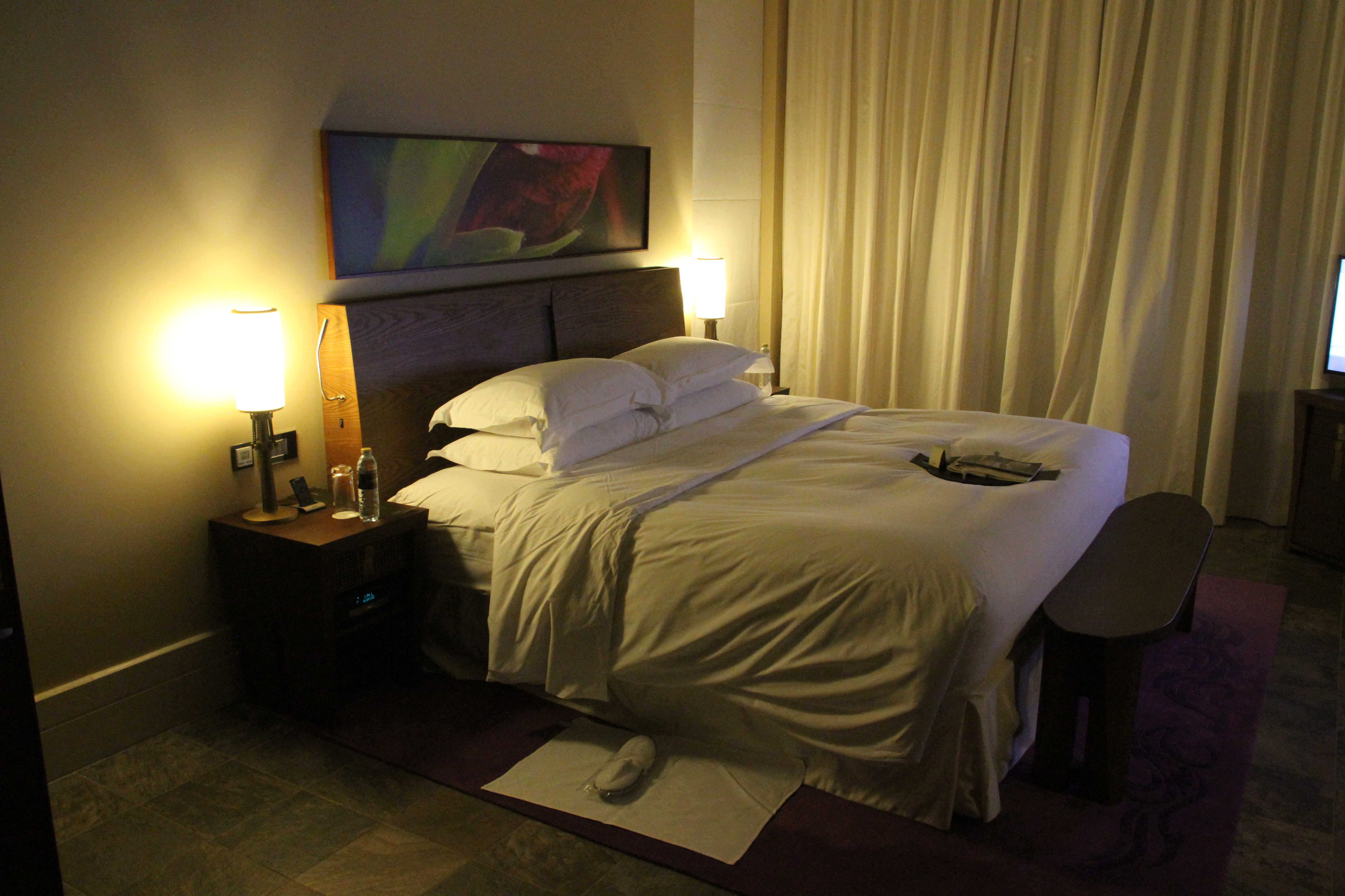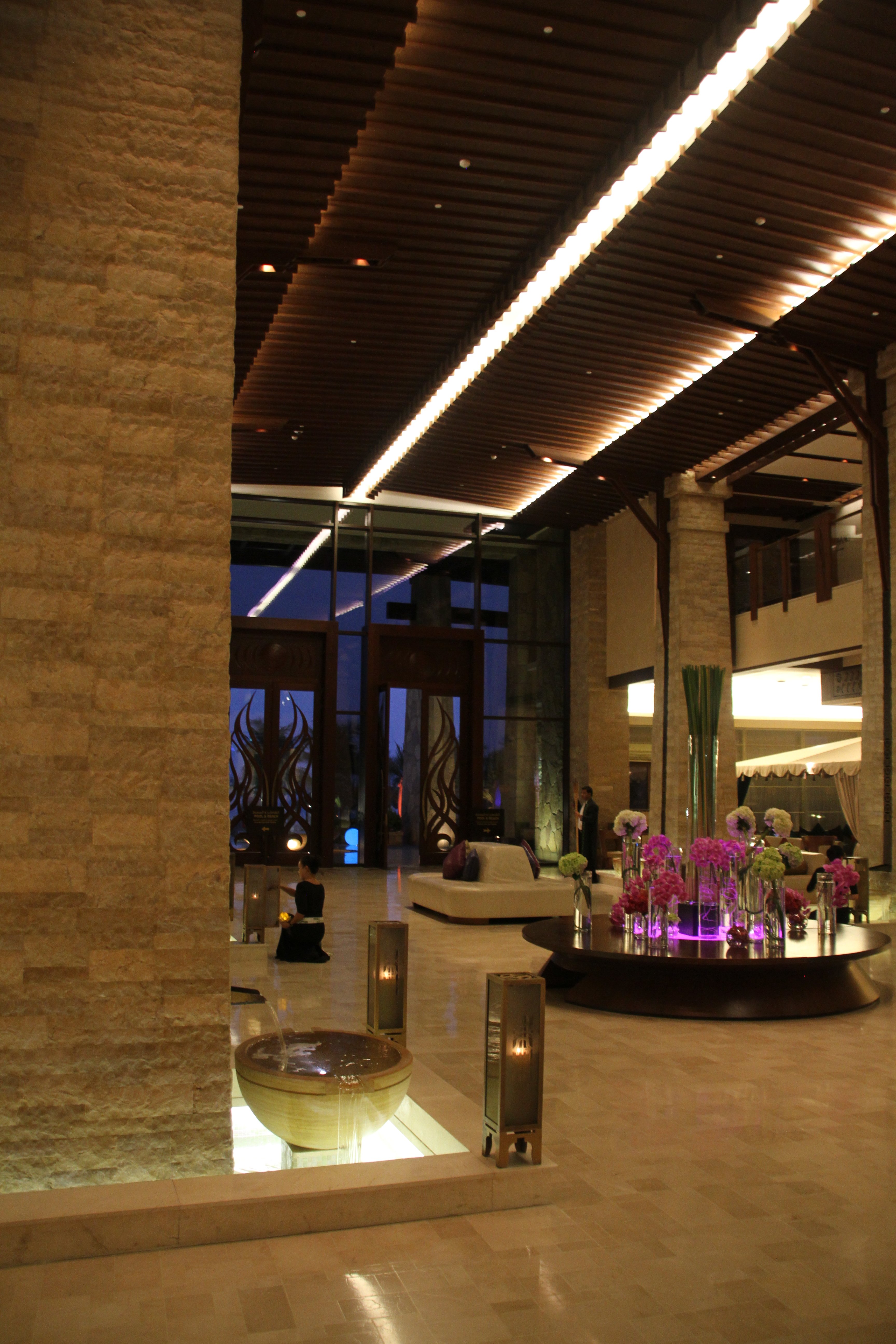 Vid ankomst blev vi varmt välkomna och fick all hjälp med väskorna och visades in till lobbyn. Vi möts av en lobby med högt i tak och trevlig inredning samt fontäner. Det var en väldigt lugn och avslappnad stämning trots en massa folk i lobbyn och kön till receptionsdisken är obefintlig.