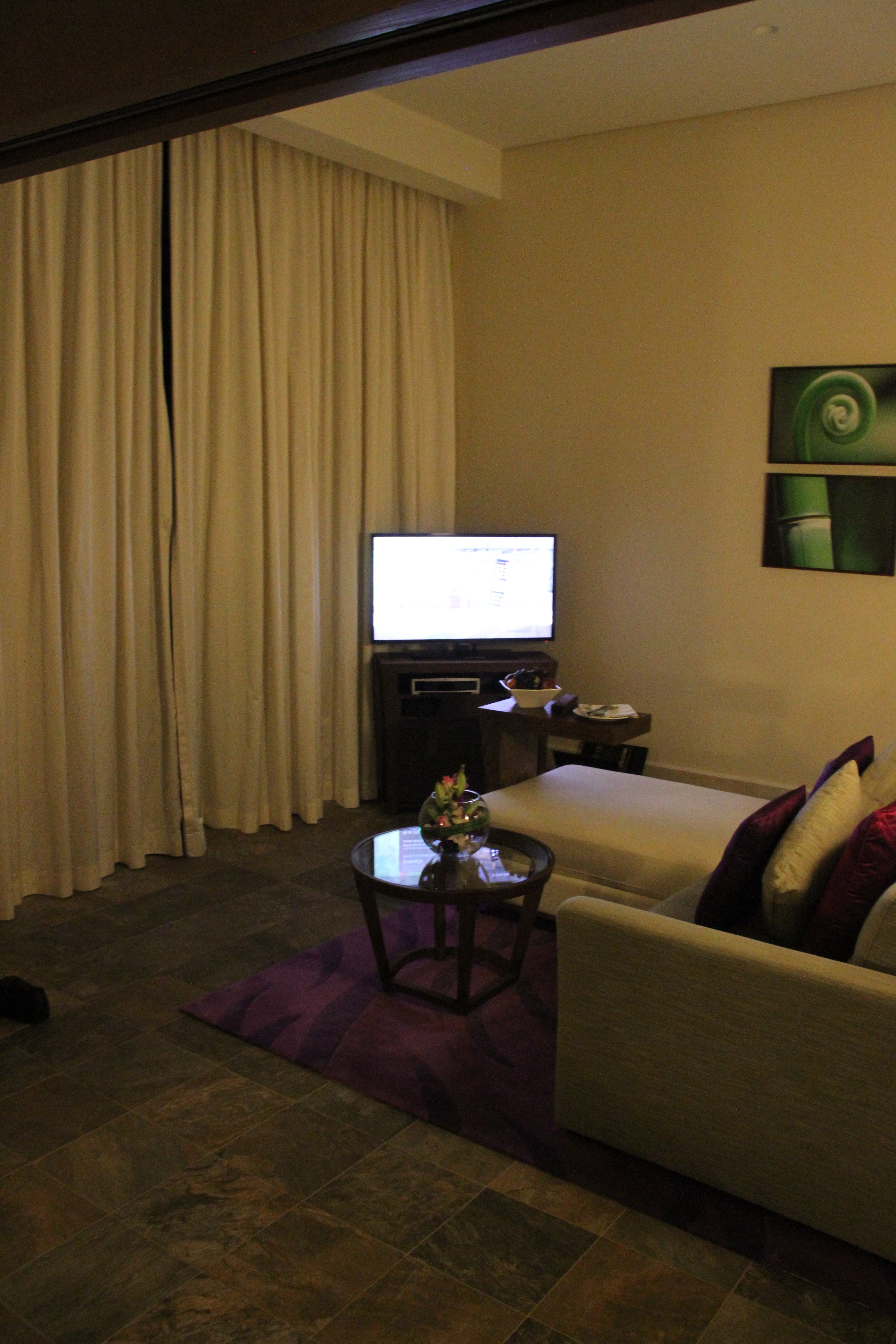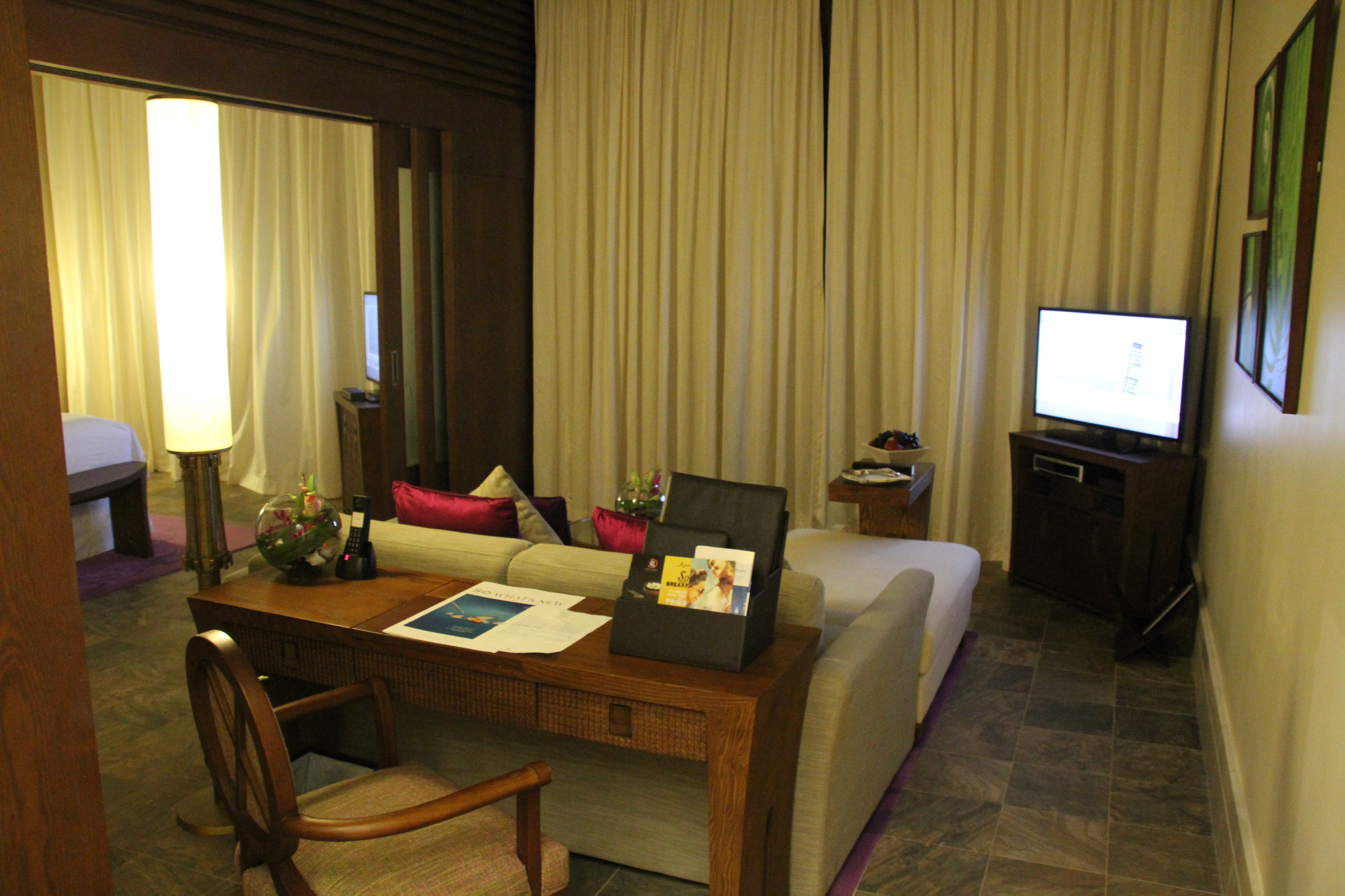 Sviten är en så kallad beach suite som ligger på 85 kvm. Uteplatsen är exkluderad i dessa mått och lägger nog på med 30 kvm. Väldigt fint inrett och typisk design som Sofitel har på sina hotell världen över.