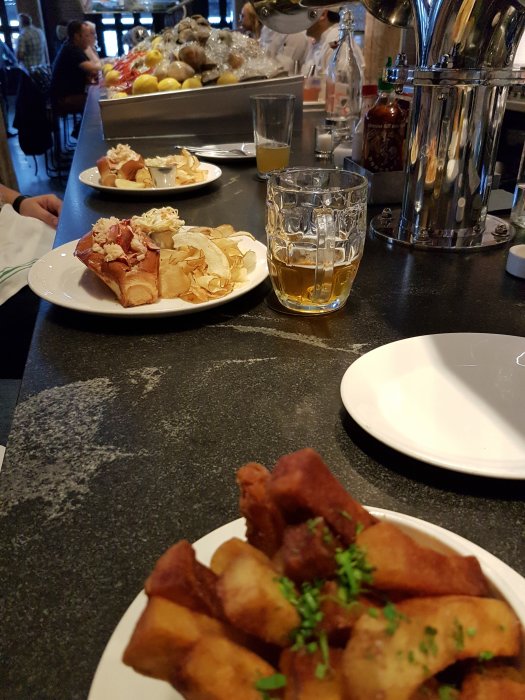 Jag var inte direkt hungrig och nöjde mig med lite pommes när polarna åt hummer med bröd.