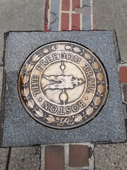 Efter frukost så var det dags att turista och dagens mål var att gå Freedom Trail några timmar. Tyvärr var inte vädret med oss och det var risk för regn hela dagen. Tog ca 4h att gå igenom Boston och bort till USS Constitution och alla sevärdheter var utmärkta med följande i gatan.