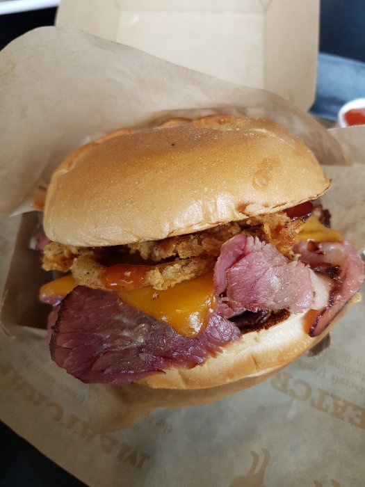 Efter matchen så kvarstod problemet att hitt taxi tillbaka. Ubers surge pricing var brutal, ca 6 ggr normalt pris så vi letade reda på ett ställe där vi kunde få dryck i skuggan och käkade sedan på 5 guys inna vi fick en Uber för ca 2ggr priset av vad vi åkt med ut till arenan tidigare under dagen.